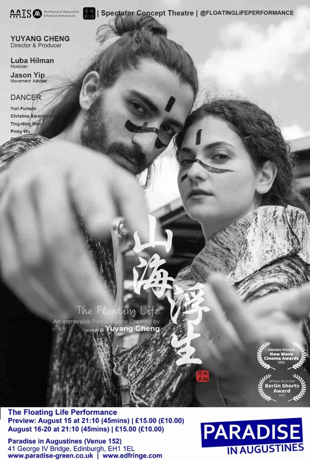 去年三月,我在AA建筑联盟学院的独立编导的个人毕业作品《山海浮生:The Floating Life Performance》实验舞蹈戏剧在毕业演出上获得了成功,并有幸带着这部作品在8月成功入选并登上了“世界四大戏剧节”之一的“爱丁堡边缘戏剧节”(Ed-Fringre Festival 2022)的舞台,获得了国际戏剧人与观众的好评,完成了我从建筑跨界到实验戏剧的一次真正意义上的转身。从18年创作了第一部新媒体实验戏剧《墨生》,已经过去5年,一直在坚持自己的新媒体戏剧创作,新老作品也不断获得国内外的奖项、在国内外剧场、戏剧节与美术馆展演。