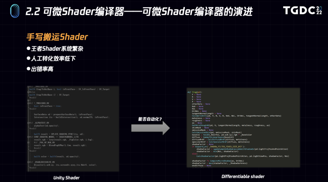 Pytorch支持Auto Differentiation,一开始我们是人工将Unity Shader翻译为Python代码,并人工保证渲染效果的正确性的,这样就能让Shader可微分了,但是这个过程非常耗费人力和时间并且难以迭代和维护。那这个过程是否能自动化呢?答案是可以的。