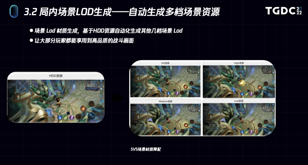 画质上,对标顶配效果的高品质LOD资产,在手机屏幕上,对非专业人员几乎无法分辨。