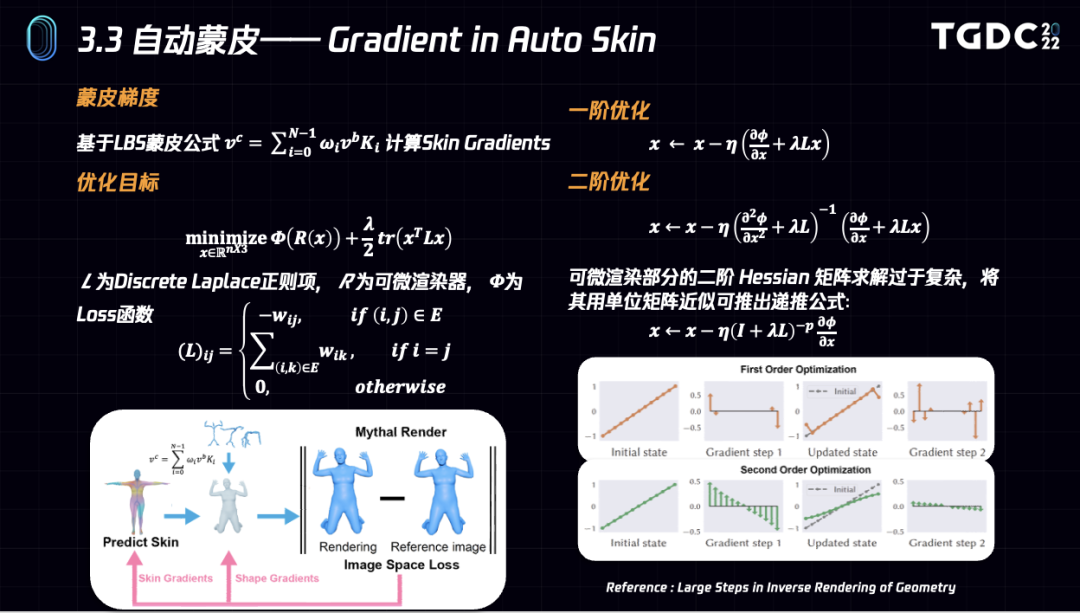 Q:在LOD蒙皮优化和形状拟合中,你们都提到了二阶梯度优化,那么二阶梯度优化相比一阶优化各有什么优缺点吗?