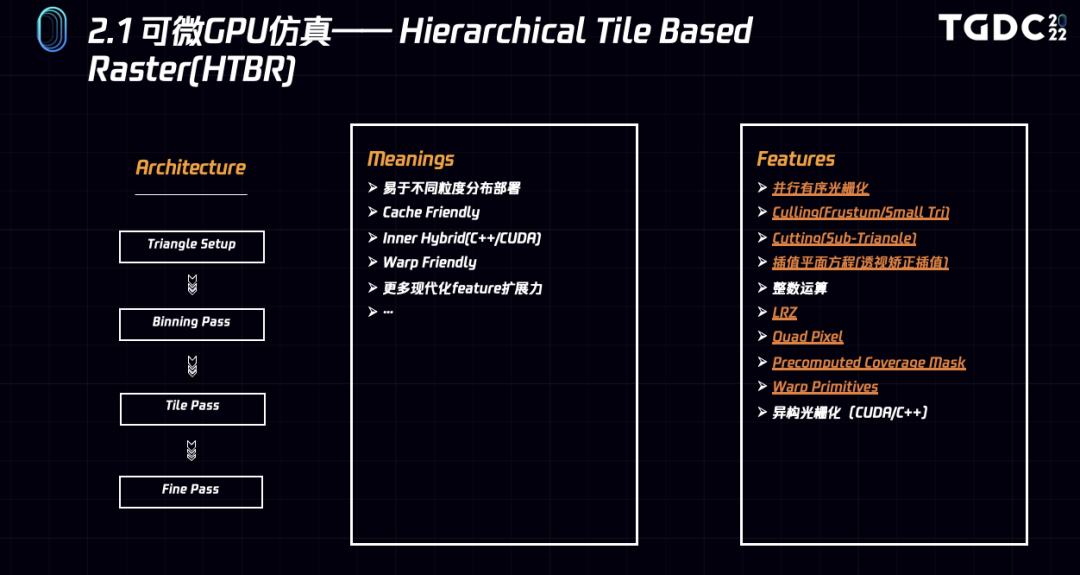 在这种层次化的结构下,一来可以在Binning和Tile等不同的粒度上去组织和部署任务,非常适合未来灵活的部署需求。另一方面,Tile Based的结构更加Cache Friendly, 方便我们更好地使用设备上的L1缓存。