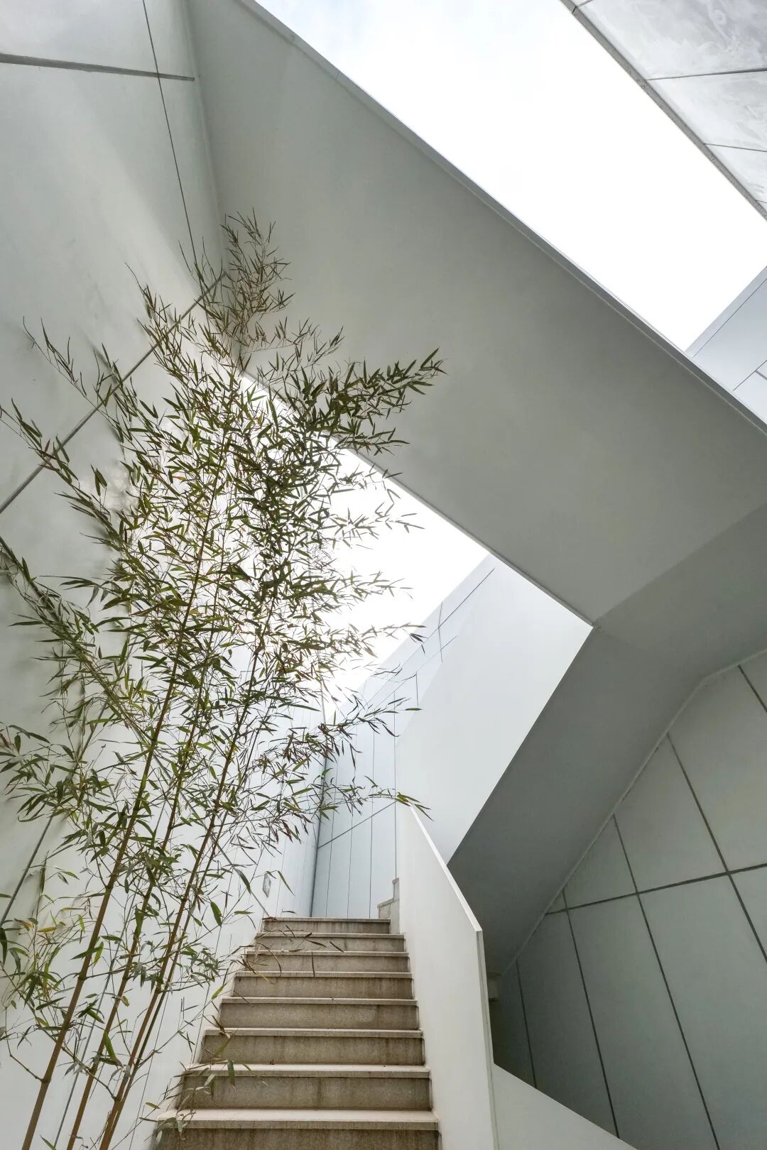 三角形元素充斥在整个建筑空间内,构筑成屋顶与天窗。透过采光天窗和下沉庭院,户外的自然光可以轻而易举地进入室内,与艺术展览交织、互动,引人遐思。