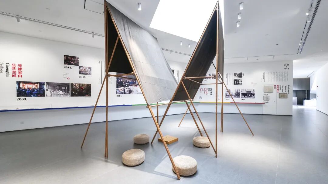 四个蒲团随意散落,一盘未完的围棋,直线交错、曲折,与天窗对视,城市家具《合江亭》正在吸引来客的目光聚焦。这是東·壹·美术馆开幕展览“日常史诗:成都市民生活与公共空间”的艺术互动装置之一。