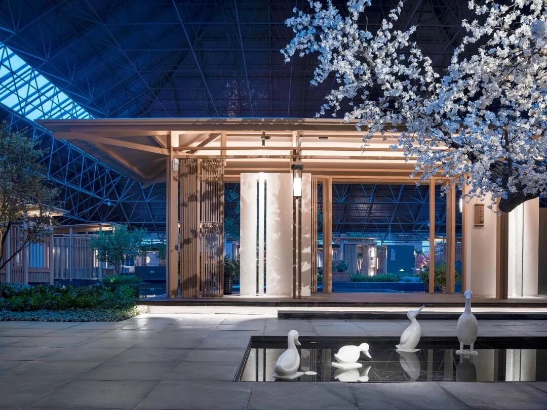 沐沄温泉以 “东方禅风”为设计理念,通过禅意五感,为宾客打造沉浸式的“轻禅生活”体验。沉浸在8处清香缭绕的花汤泡池中,优雅惬意;4处独具养生疗效的中药泡池,舒适疗愈。空间布局上,浸浴自然的景观汤池、可观星月的露天汤池、私密独立的小汤屋及适合亲子享乐的家庭式汤屋,亦为休闲、商务亦或家庭出行的不同旅者提供舒适便捷的放松空间。