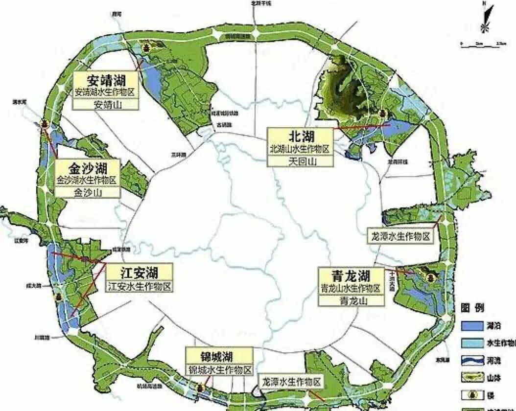 南湖公园、秦皇湖、兴隆湖、怡心湖、东安湖、凤凰湖和麓湖构成了新的城市湖泊群。