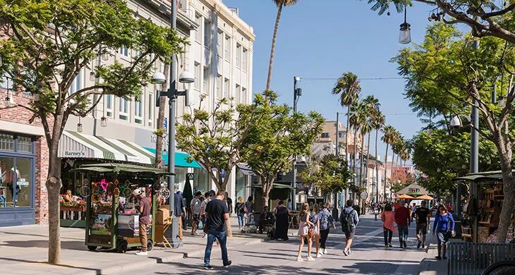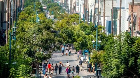 并非所有的城市都适合开放式的购物街区,那些天气极好的地方往往成功率更高。比如圣莫妮卡的第三街长廊。