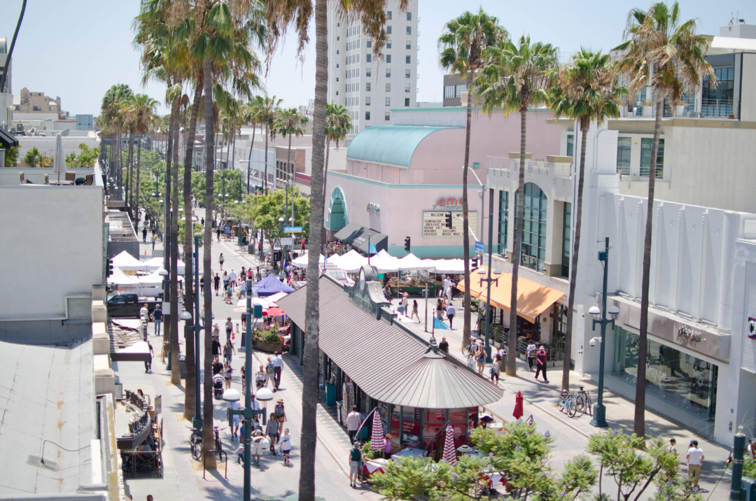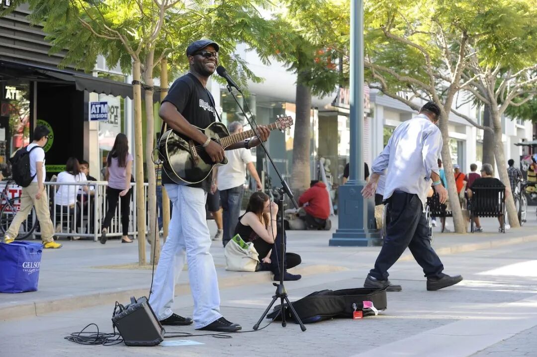 正如大学的存在提供了一个非常本地化的行人流量来源,步行距离内的其他旅游目的地也有类似的效果。比如靠近海滩的步行街圣莫尼卡的第三街长廊,它于 1965 年开业,至今依然热闹非凡。实际上,在1980年代,该区域也面临着是否关闭步行街的抉择,但最终他们选择在人行体验上加倍下注。这也意味着他们将把重点不再放在零售上,而是聚焦在创造一个城镇广场、创造一种社区氛围。