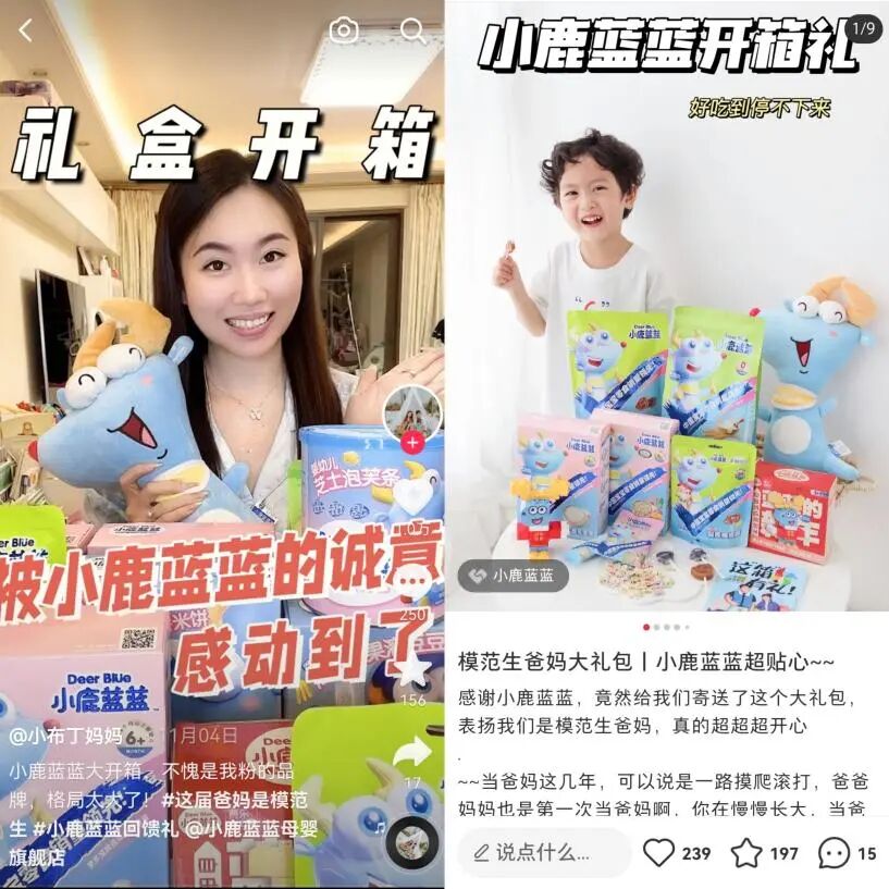 三只松鼠从线上“发家”,深知营销在品牌起盘阶段的重要性。从营销策略来看,小鹿蓝蓝以抖音为原点渠道,协同各大热门平台进行全域营销,用大量种草内容打爆酸奶溶豆和冻干奶酪块等明星单品,建立品牌认知度。