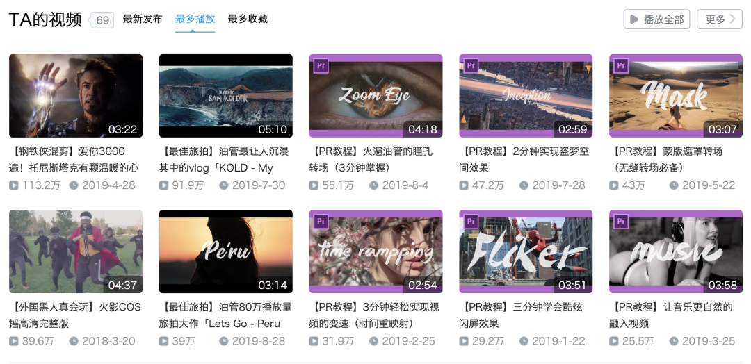 从PS、PR、AI、AE到Office 三件套,他都有出相关的教程视频!