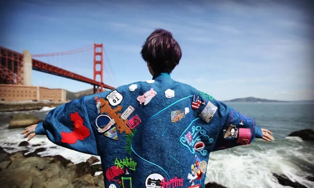她喜欢缝纫,也喜欢旅行,于是便穿着自己设计的衣服去旅行,每到一个地方就“贴”上一个印记。