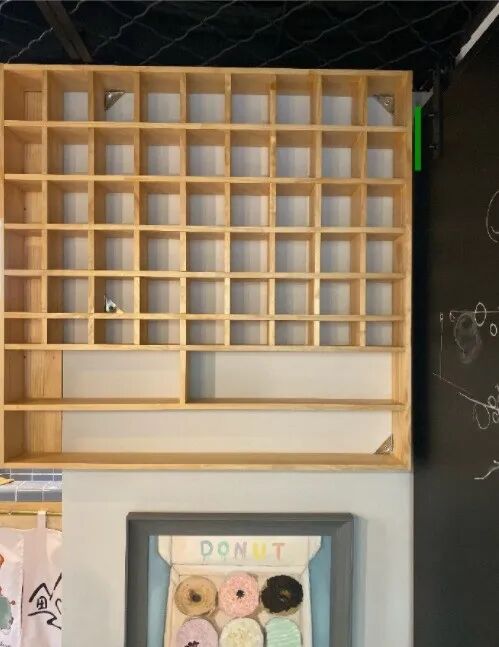 担心朋友们送的杯子大小不一,这里的每一面网格都被设计成渐变的、不同形态的,任何造型的杯子都可以承载。