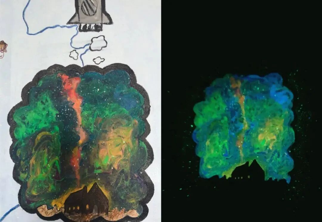 去新西兰看星空,然后用画笔和夜光颜料,把星空“复制”到了自己的手账上。