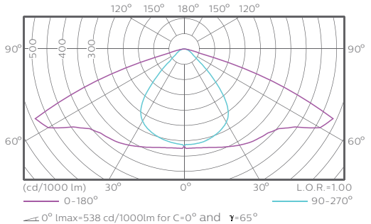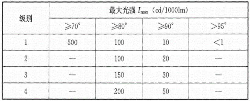 表中给出的是灯具在安装就位后与其向下垂直轴形成的指定角度上任何方向上的发光强度。