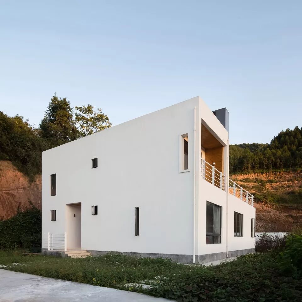 项目场地位于赣南山间的村落边缘,满眼的绿色使金丰看到周围环境的那一刻起,就决定接下这个案子。背靠山林,静怡安宁。站在场地中央,山林树影斑驳,一座独守山麓的静谧白屋在设计师的脑中浮现。