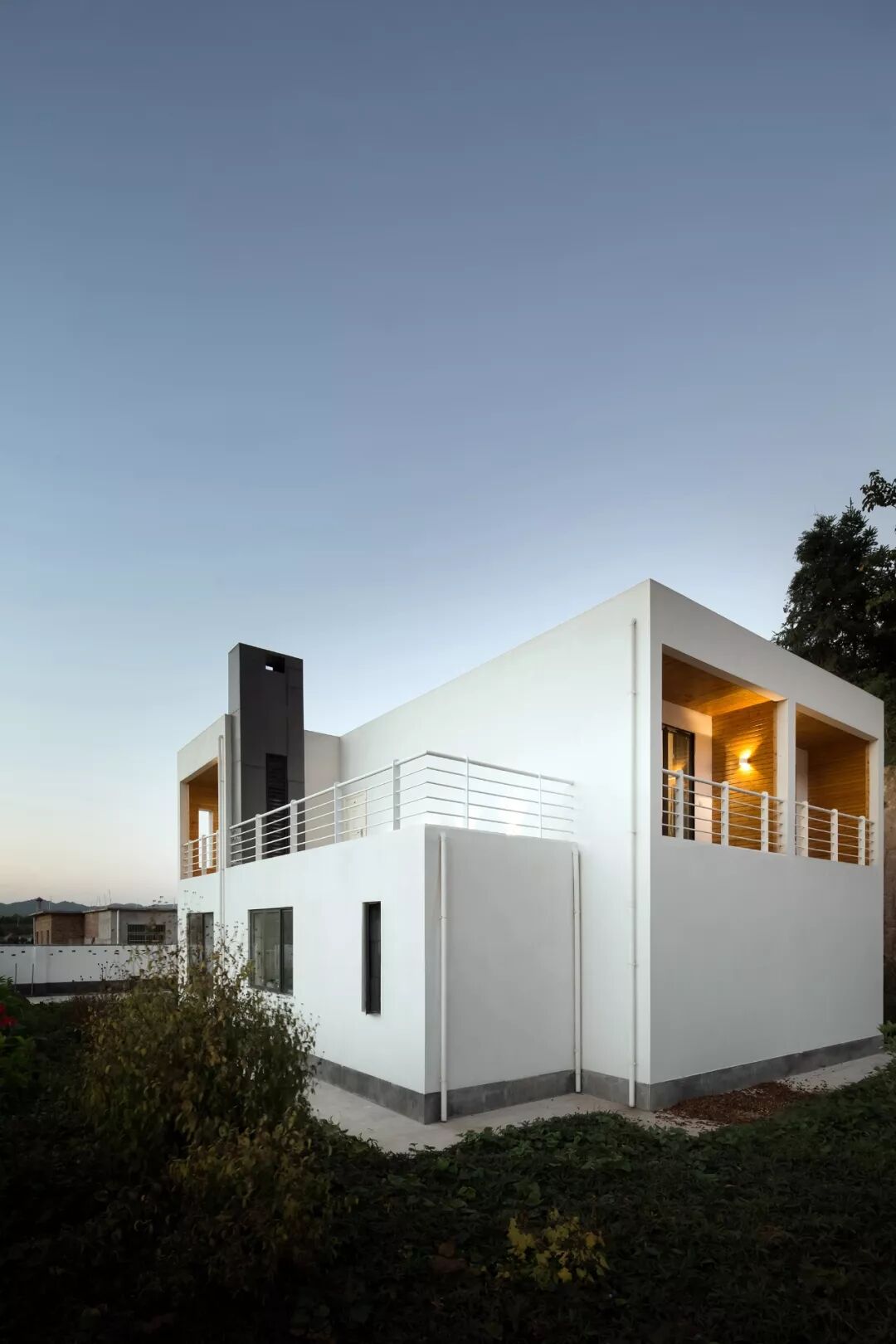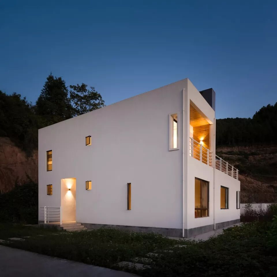 ▼白色的住宅背靠山林,静静地伫立在场地上