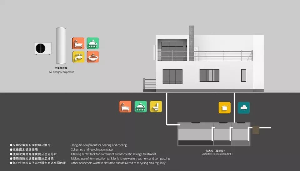 为此,在设计之初,金丰就考虑了房屋整体的化粪池及垃圾发酵系统。系统的设计能够有效解决乡村生活的排污问题,发酵池产生的肥料,还可反哺家中菜园。这样的系统规划,在当地并不多见,金丰积极的说服了业主,最终完成这套系统后,项目使用的便利性被大大提高,同时也能更好地与周边自然环境融合共生。