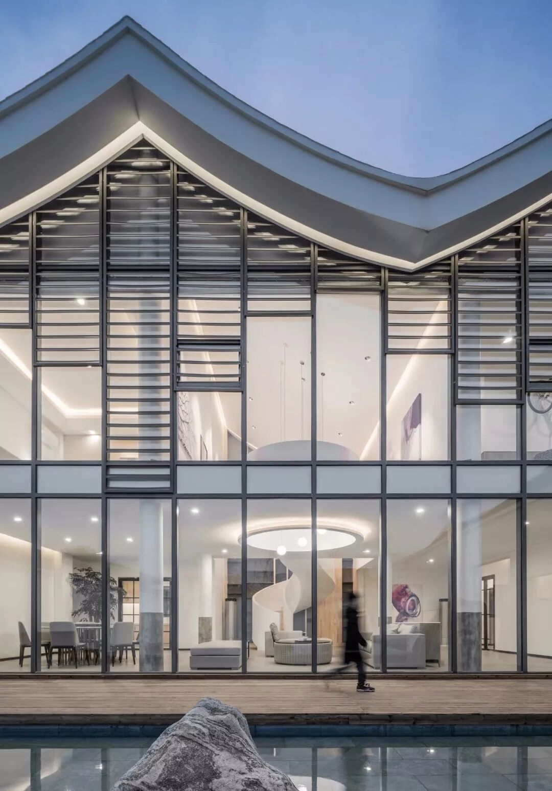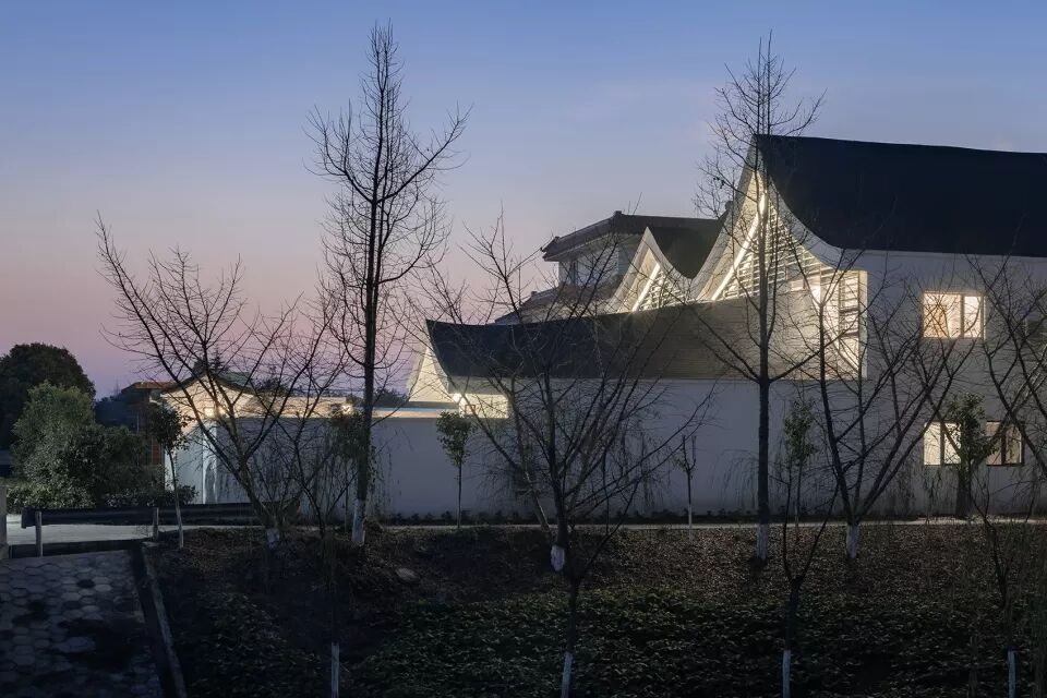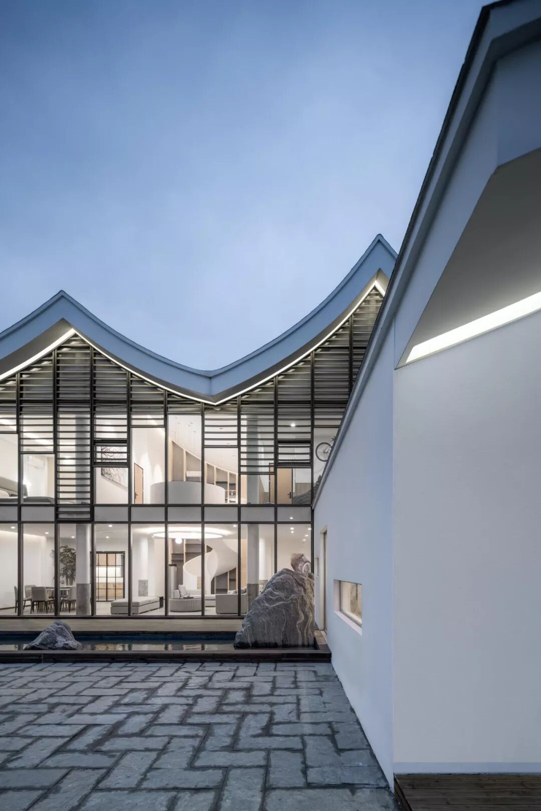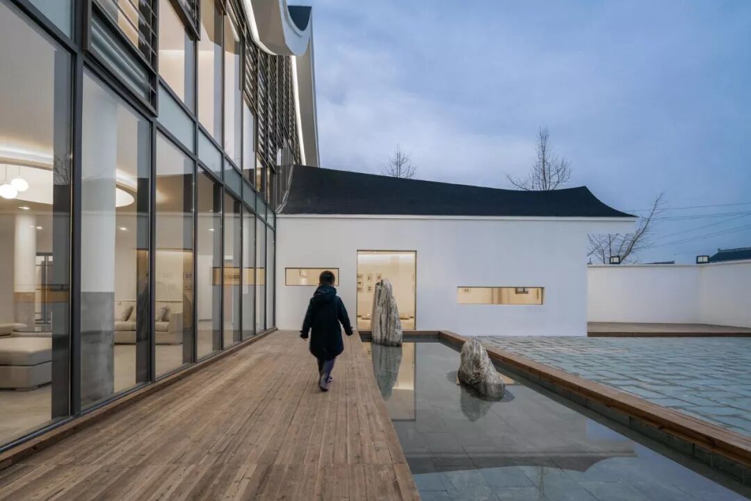 院门的传统处理方式与新的建筑轮廓产生了穿越时空的对话。