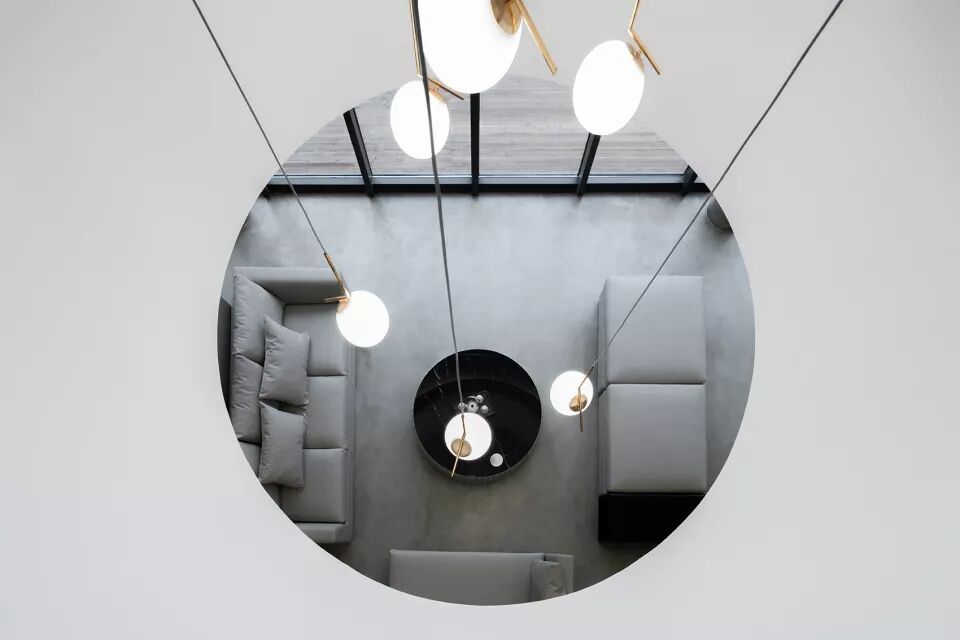 主要材料:高标号水泥、橡木、橡胶木、FLUA照明、白色乳胶漆、铝板
