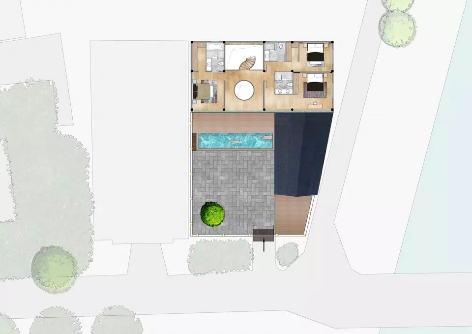 甲方常年定居国外,所以我们将该建筑定义为度假别墅的性质,与传统度假别墅不同的是增加了一个祠堂,除了用于祭祀以外,我们将过往的老宅记忆都填充到里面,未来还会有曾经用过的老家具和老物件会被整理后陈列其中,更像一个家庭博物馆。