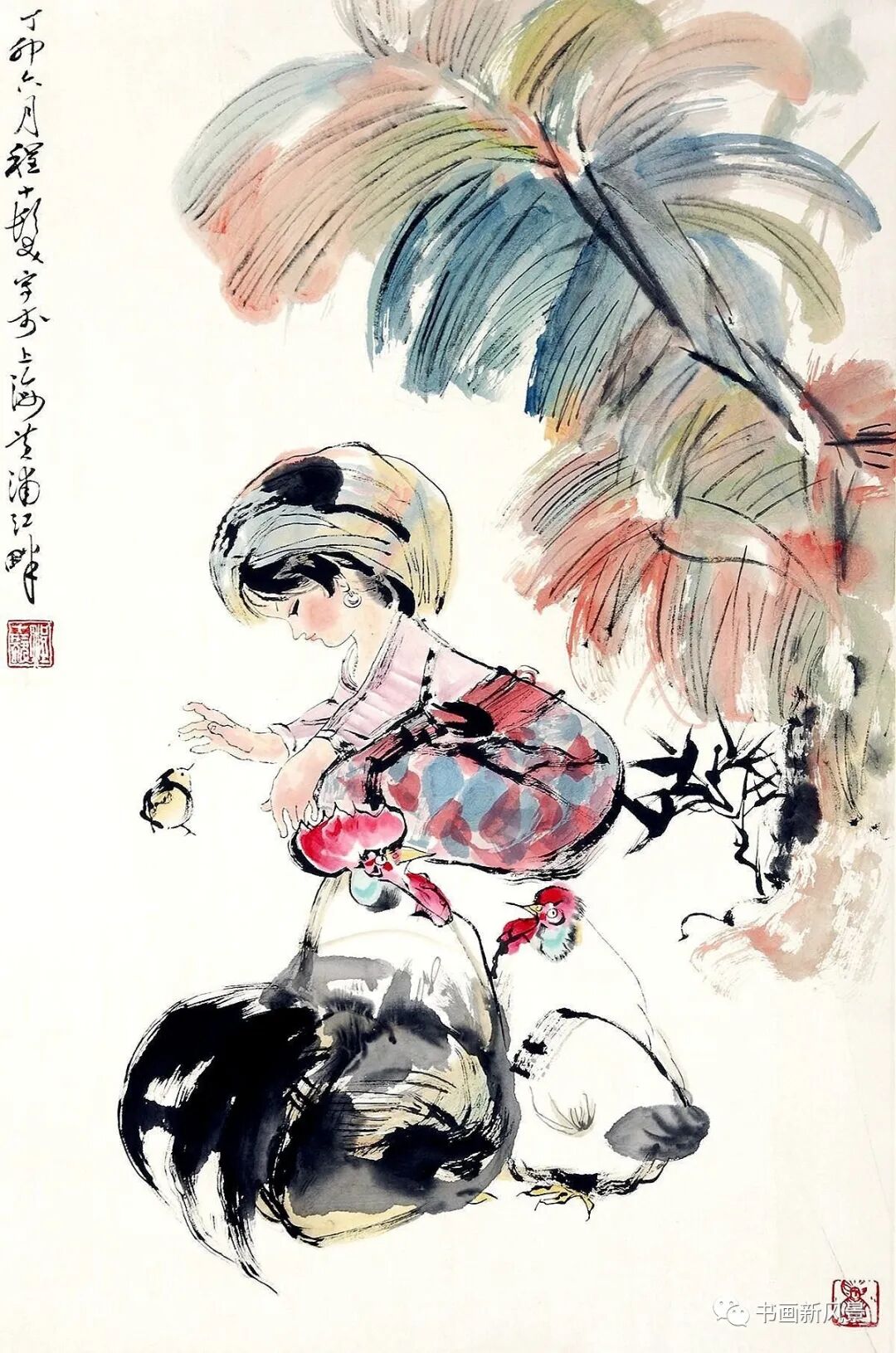 程十发(1921-2007),中国海派书画画匠,在人物、花鸟方面独树一帜。程十发曾说,画画要处处显得放松——精神放松,笔放松。描绘对象要繁物缩简,简而化繁。