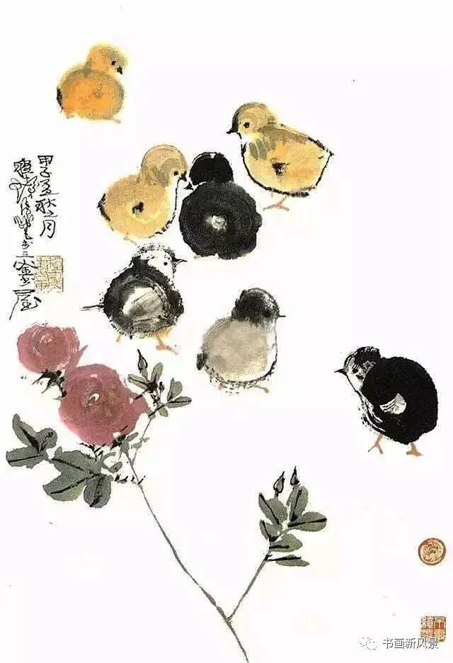 有一次,他画好了一公一母两只鸡,一边和朋友说笑,一边就题上这么一首打油诗:画出两只鸡,好像是夫妻,母的会生蛋,雄的喔喔啼。。。