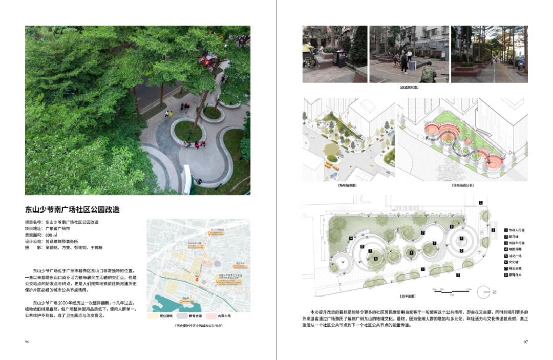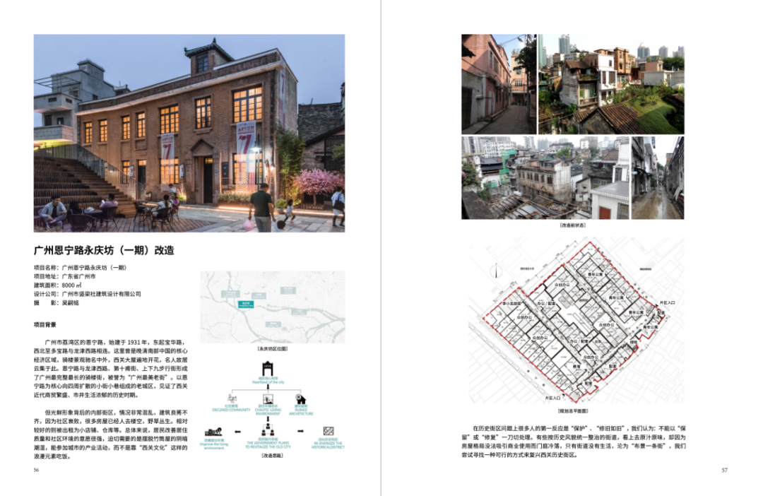 本专辑案例大致分为6种类型的改造更新:老旧社区、历史街区、老旧厂区、旧商业区、城市公园、城中村。下方是本书的内页节选,欢迎鉴赏。