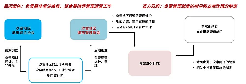 公私联合,统一方向:汐留SIO-SITE所属的东京港区管理部门,在开发前期,以「轻参与重引导」的方式参与其中。
