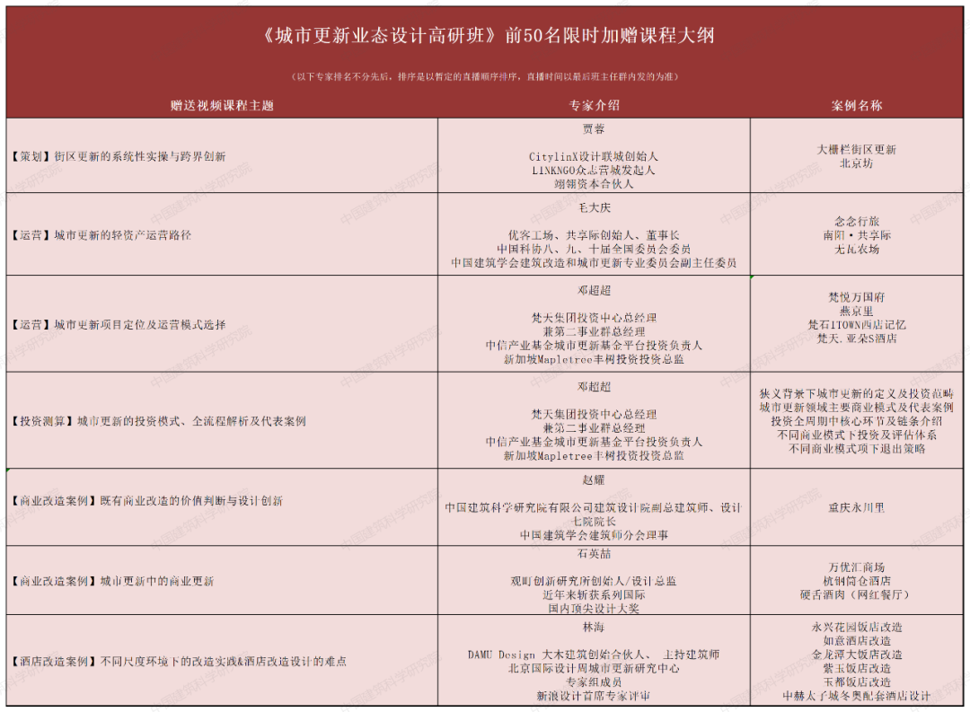 为此,中国建筑科学研究院有限公司中建研科技股份有限公司教育创新中心特此推出《城市更新业态设计高研班》培训。