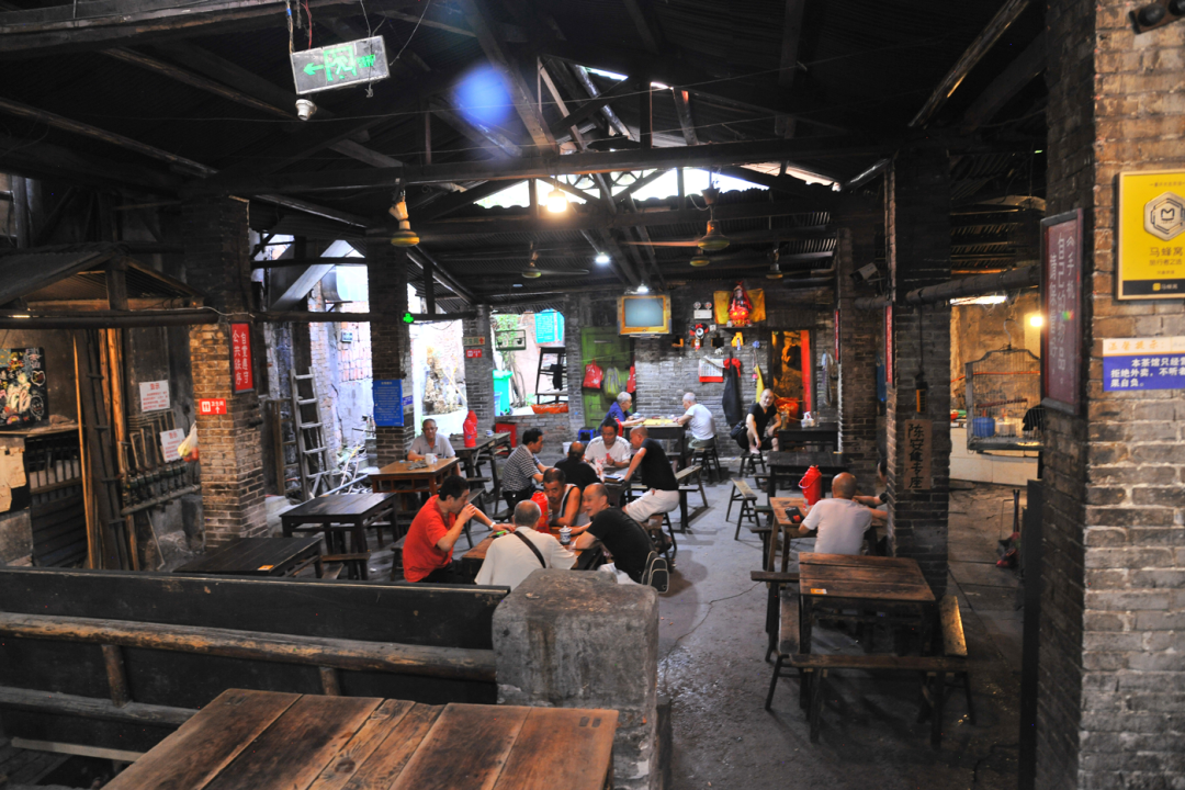 九龙坡区黄桷坪有一个“交通茶馆”,也是这类驻留时间和历史的场所,虽然它破旧、简陋、甚至低档,但它是延续城市生命力的一个重要纽带。“交通茶馆”几十年面貌如旧,依然有各种身份、各个层次的人以他们各自的理由,络绎不绝地来到这里。