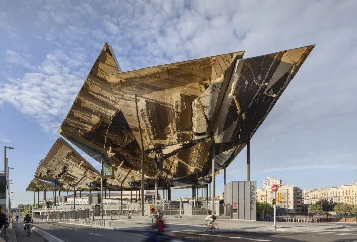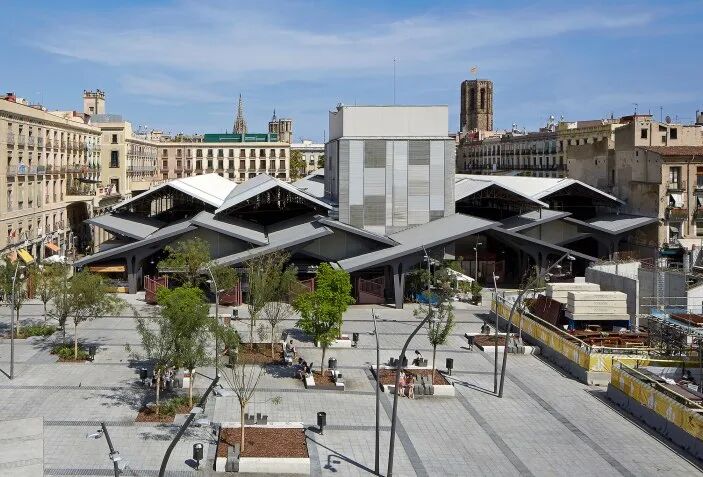 空间重组后,Carme Pinos设计了位于巴塞罗那市中心兰布拉大道的Boqueria市场的后立面。Boquería市场的扩建响应了在空间重组后在建筑后部区域设计新立面的需求,研究提出了一个灵活且易变的屋顶,减少其规模并且更接近用户。