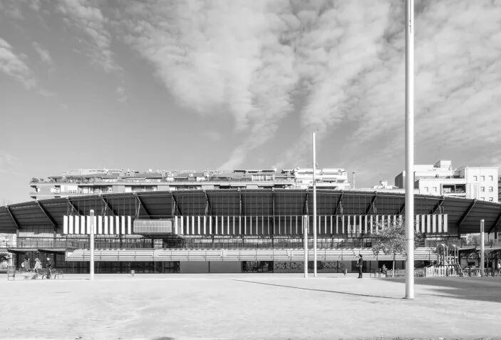 由Carme Pinós设计的马萨纳学校位于巴塞罗那市中心,耸立在加尔杜尼亚广场和Boquería市场之上。与建筑周围的住宅建筑不同,马萨纳学校力求在其城市环境中脱颖而出,它的主要立面面向加尔杜尼亚广场。