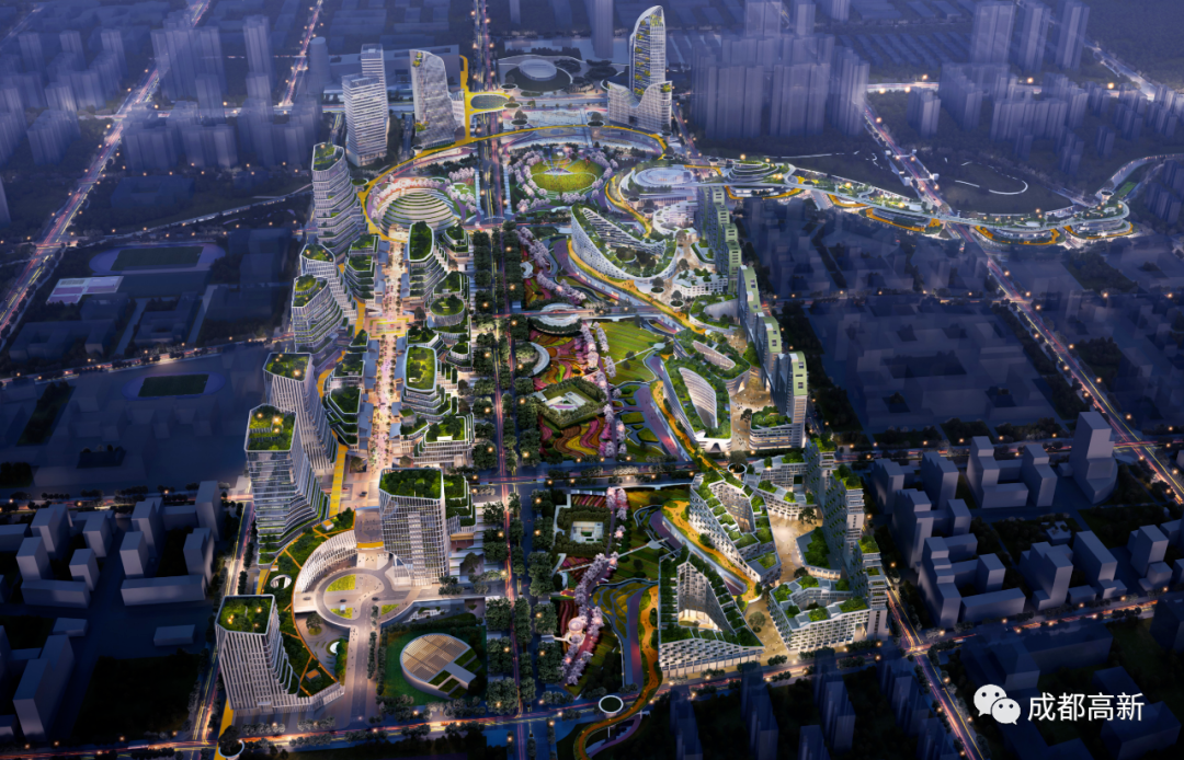 2020年9月,秉承公园城市建设、片区开发、 TOD及EOD理念,结合国际标准、世界眼光、天府特色的骑龙创新园深度城市设计方案——“潮想·山社”出炉。