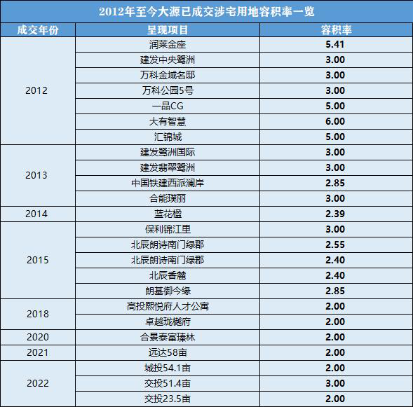 数据显示,2015年以前,大源项目容积率大多集中在3.0以上。