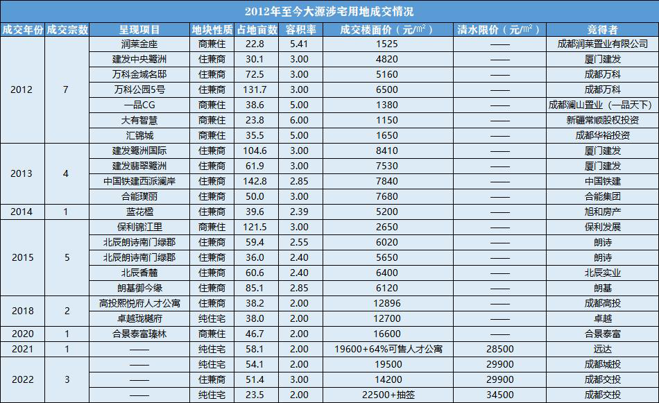 四川中原地产数据显示,回看十年,2012年至今,大源共成交24亩涉宅用地,合计1426.25亩,若以每五年一个周期观察供地数量变化,我们能看到: