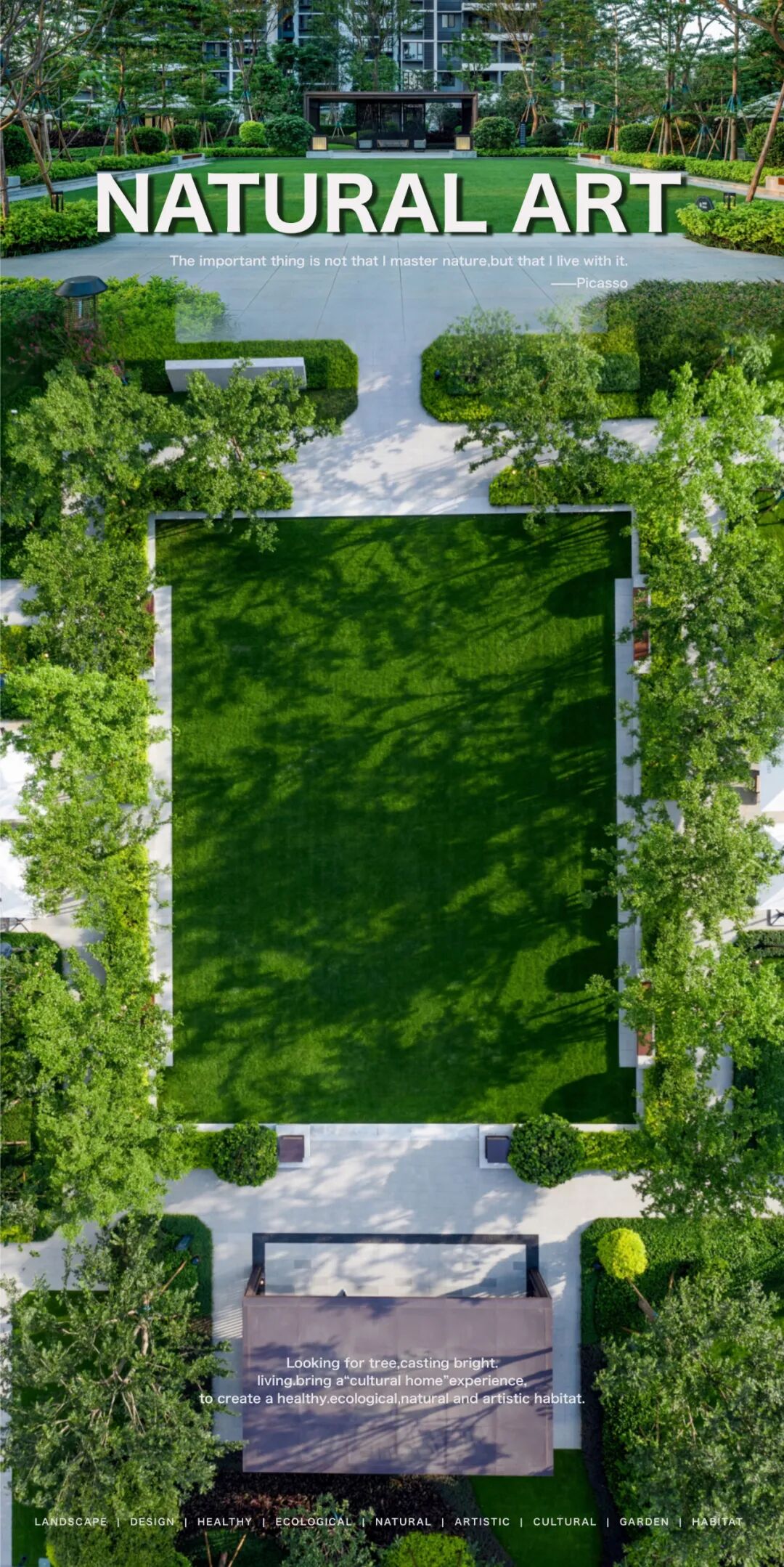 Life can be compared to a unique art. The pursuit of natural and fashionable urban life can be regarded as the sublimation of refined art. The natural shade of trees in the city can satisfy those who yearn for embracing natureand long for finding tranquility from the hustle and bustle of the city. Just as a real hermit lives in a bustling place,an ideal garden residence is built in the city.