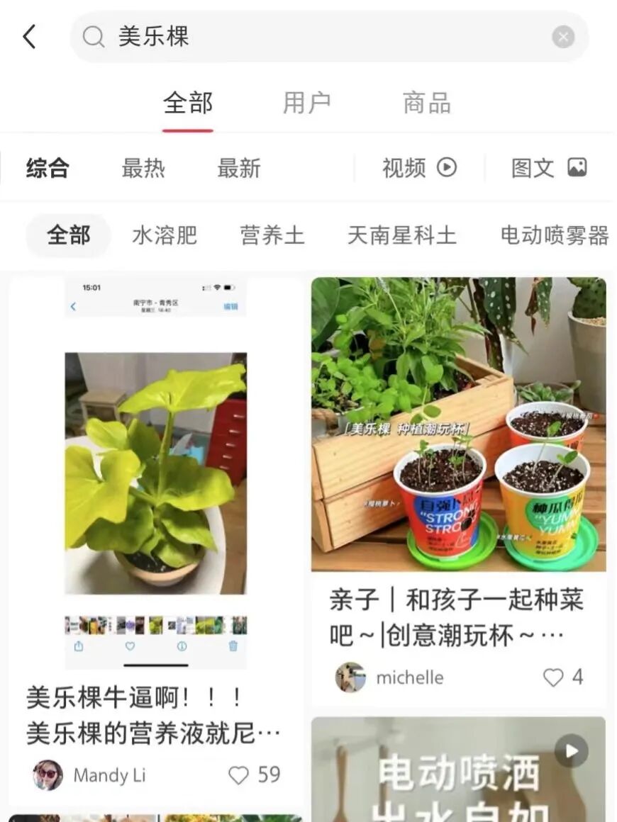 考虑到中国消费者普遍对家庭园艺的理解比较初级、缺乏专业植物养护知识,美乐棵在加大市场教育的同时,积极通过线下市集、IP联名、产品包装创新等,让C端消费者直观感受到种植的乐趣,营造潮流、轻松的生活方式。这种以用户体验为核心的场景化展示,增加了产品的辨识度,用户也更愿意为有故事、有温度的产品买单。如今在小红书平台,美乐棵已积累了近万篇笔记,建立了一定的口碑基础。