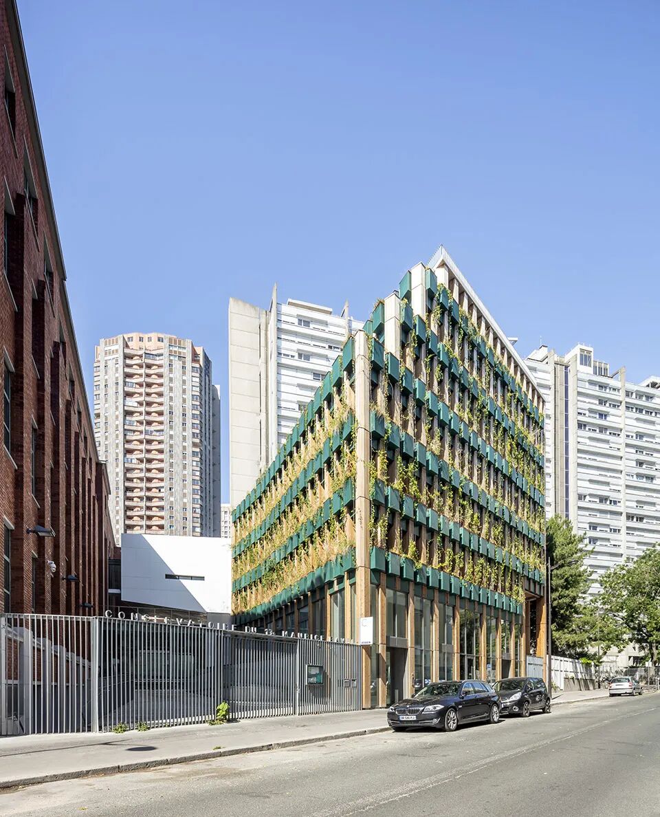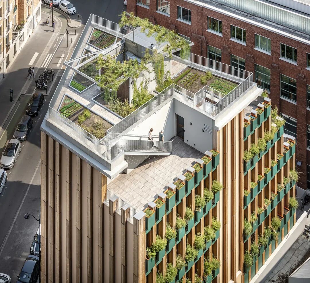 位于法国巴黎的EDISON LITE公寓,融合了多种城市农业的形态,项目建造过程中种植了大量植物,共耗费75立方米土壤,分别使用在290个花坛和150平米的屋顶花园中。
