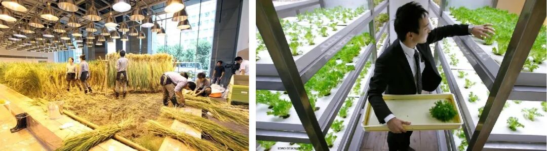 PASONA种植出的多种有机蔬菜稻米,供员工餐厅烹饪。职员与农作物同处大楼内,既可在富生机的自然生态中办公,又可随时走入蔬果间,享受田园乐。