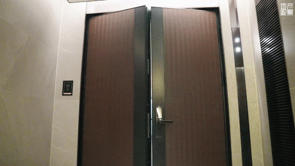 采用查普曼意式装甲门,基于层高黄金分割点打造高2.5米双开门设计,采用真皮包裹,开门间就感受到了仪式感。