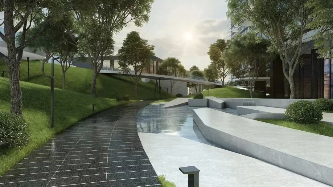 这是因为天奕与滨河绿带、东风渠相望,于是就在天奕内部造山,营造出背山面水的景观大格局。