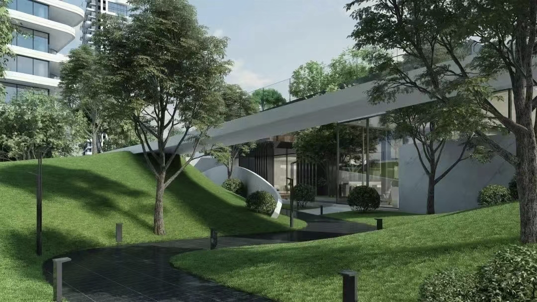 未来天奕在社区内打造了超豪华双会所,镜面水景下方是约2700㎡沉浸式地下人文图书馆