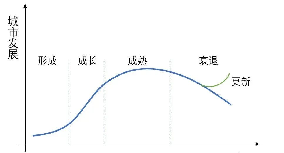 随着城市更新成为新型城镇化发展蓝海,地方政府与各类投资主体纷纷投身城市更新领域。但纵观众多项目更新过程可以发现,绝大多数存在重形式轻内容的问题。城市更新不应简单理解为空间形态改造,更应该是产业迭代升级。 产业赋能城市更新 2.产业为城市更新带来新活力 城市本身发展规律形成了城市生命周期,包括城市形成、成长、成熟、更新或衰退几个阶段,任何城市的发展都遵循着这一客观规律。 在城市成熟阶段后如果任其发展,一般都是开始走下坡路,只有通过城市更新注入新的血液,对原有产业进行变革,衍生新的功能和业态,才能推动城市转型,迈向新的更高阶发展平台。 3.产业助推城市更新目标实现 2020年12月,住建部部长王蒙徽发表文章《实施城市更新行动》,归纳了城市更新的总体目标是“建设宜居城市、绿色城市、韧性城市、智慧城市、人文城市,不断提升城市人居环境质量、人民生活质量、城市竞争力,走出一条中国特色城市发展道路”。 物理空间改造只是城市更新的外在表象,本质是通过产业重塑和功能再造,创造更多、更高的价值。 没有产业升级的城市更新如同无源之水,只有产业之核实现迭代和升级,才能实现提升人居环境、生活质量和城市竞争力的城市更新目标。 产业如何选择 区域产业选择需要结合当地资源禀赋,依托现有产业基础,通过对产业政策分析和行业发展趋势把脉,构建能够引领未来发展方向的产业体系。 城市更新项目的产业选择更加严谨,所处的核心区位和更新一次的代价巨大,要求城市更新项目产业选择要有产城融合度高、轻量化和产值高特点。 1.文创产业 文化创意产业是以创造力为核心,以文化为灵魂,以知识产权的开发和运用为主体的新兴产业,包括影视、动漫、演艺、传媒、设计、电竞等新经济业态。 文创产业与城市更新具有高融合度,文创产业独有文化属性和艺术属性可以活化项目中破旧的设施,并为项目注入诗意和美学,两者结合创造出更高的附加值。 正如竞争策略大师迈克尔·波特所说,基于文化的优势是最根本的、最难以替代和模仿的、最持久的和最核心的竞争优势。 2.科创产业 科技创新产业是指依托科学、技术和新工艺,采用新的生产方式和管理方式,开发出新的产品或提供新的服务模式的创新型行业,包括新一代信息技术、高端装备、新材料、新能源、节能环保和生物医药等高新技术产业和互联网、大数据、云计算、人工智能和制造业深度融合的科技创新行业。 科创产业高科技含量能够带动城市更新项目对原有产业体系进行升级,推动制造业的高端化发展,带来更多的经济效益。科创产业高端人才需求也推动城市更新提供更好的生产和生活空间,二者实现良性互动。