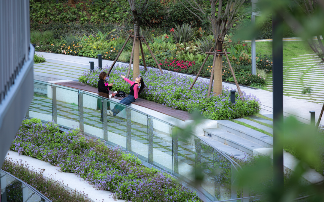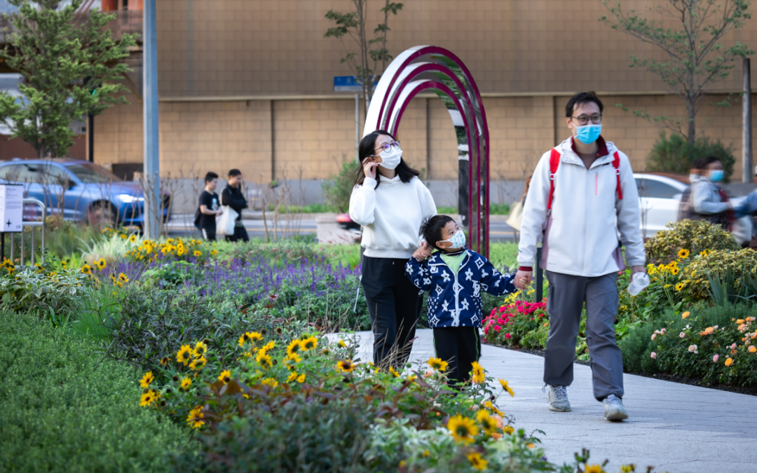 无论是一同散步的三口之家,假日同游的闺蜜团,快乐打卡的母女二人组合,还是午后来溜娃的幸福长者,城市公共空间被激活,让更多户外活动成为可能,论证了设计师对场地的功能定位,空间尺度的合理性——使用者的感受和日常行为,才是空间设计的核心本质所在。