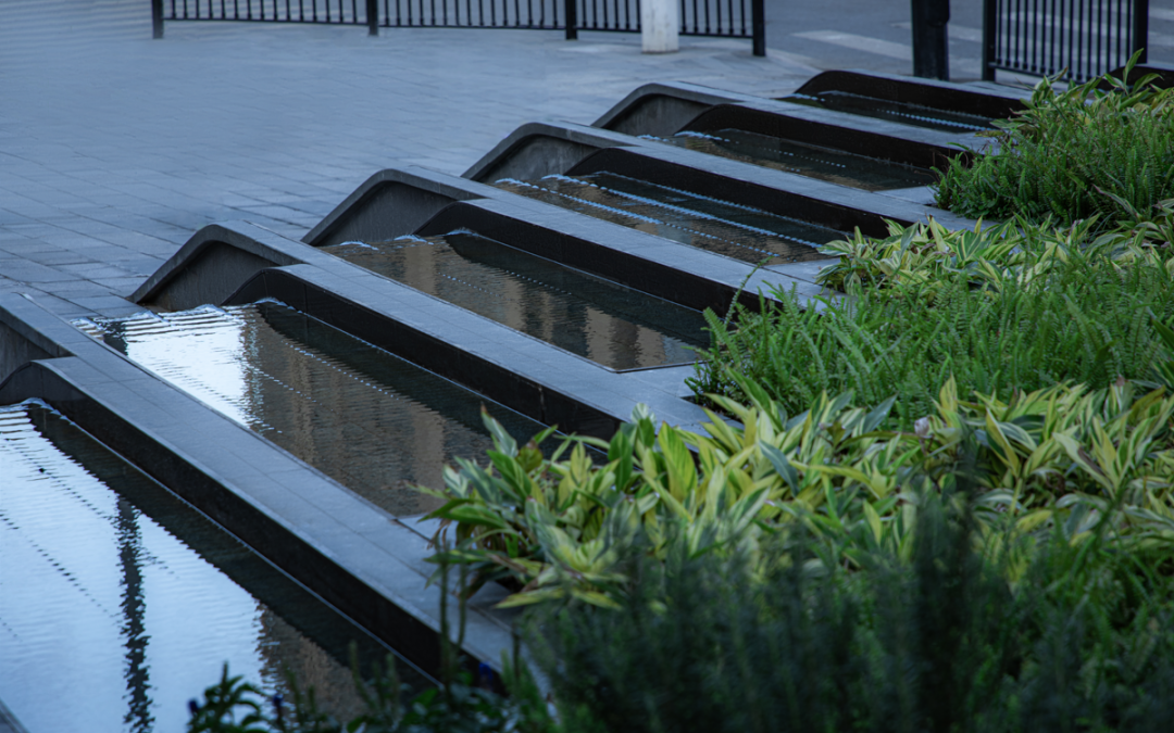 Exquisite water feature design, with chamfer details,highlights that the project has an international fashion temperament. At the same time, it can also reduce the security risks of public space.But it has greatly increased the difficulty of the construction technology.