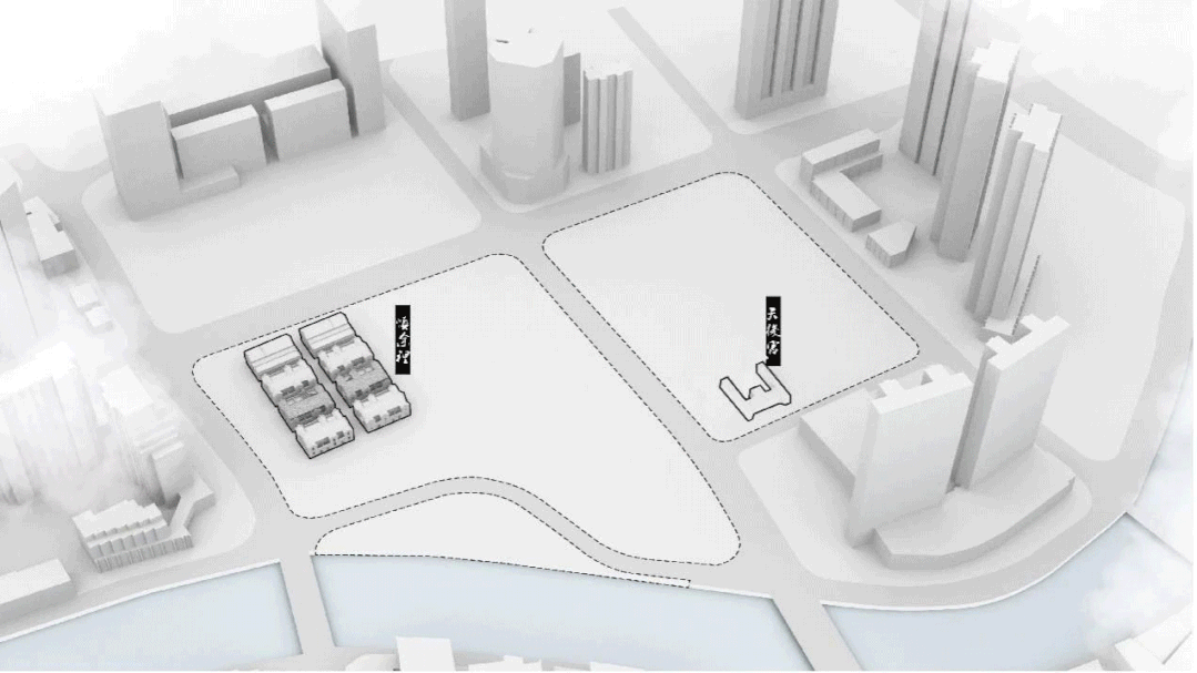 周边高楼林立,密集的建筑群让城市空间拥挤而压抑,缺乏生机与活力。场地内保有独特的文化遗址天后宫和慎余里,如何用景观回应上海包容的文化特质,在公共空间体系中体现黄浦江文化及海派文化的内涵,成为本次设计的切入点。