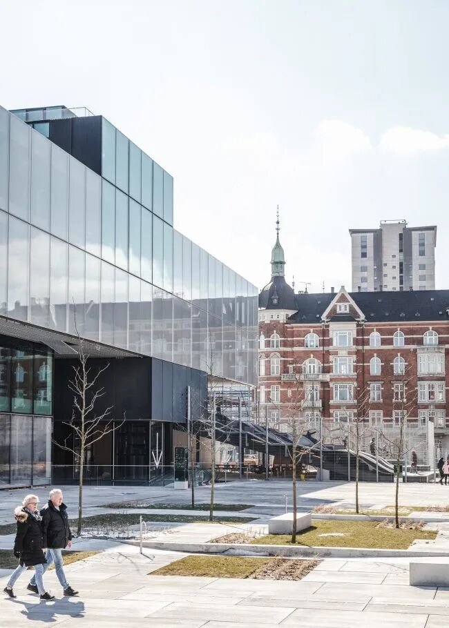 BLOX为沿海街道、Kierkegaard广场和市区赋予了新的关系。其方形的体量与海港的边界保持了平齐,打造出一个受到荫蔽的城市广场,与周围传统的黄色建筑形成对比,同时在既有的图书馆广场上形成了富有价值的建筑立面。