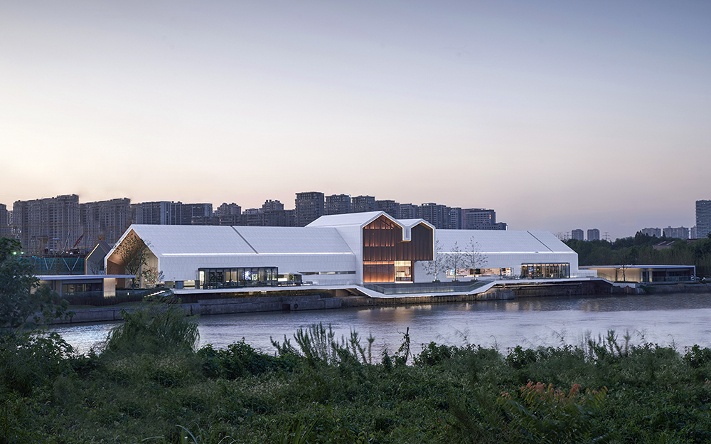 作为展览建筑,使命在于营造“枕河人家”的美好氛围,传递诗意与烟火交融的精神特质。追本溯源,设计者在设计策略上贯穿始终对地域特质的回应、提炼,从建筑和场所的历史文脉关系中挖掘调研,因地制宜打造符合时代气质的作品。