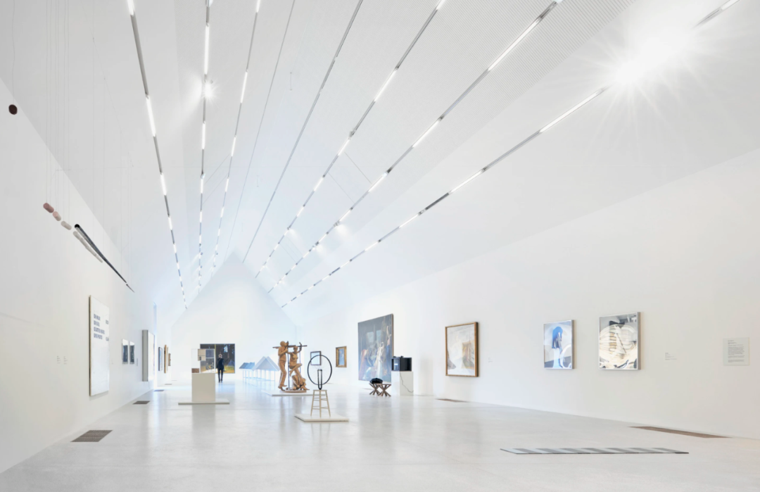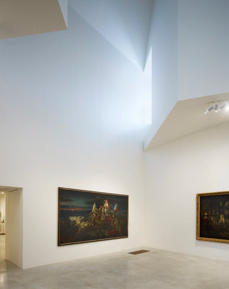 在一楼和二楼,新建筑代表了20世纪收藏的松散时间顺序。相互关联的空间单元组织和构建地板的整体体积,而不是对其进行细分:在这里,作品或作品组相互关联展出。