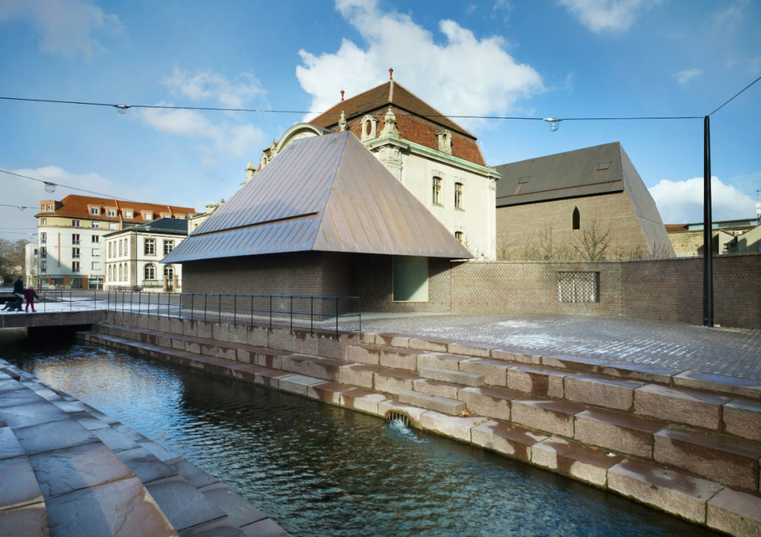 流经科尔马老城区的辛恩运河已经重新开放,成为这个新公共空间的核心元素。靠近水边的一座小房了标志着博物馆在广场上的存在:它的位置,体积和形状是曾经嘉立在那里的磨坊。两扇窗户允许路人向下看连接两个建筑群的地下画廊。