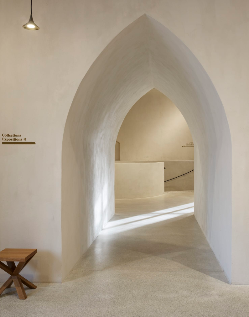 在美术馆内部,一个底部直径5-7米、高16.4米的“光塔”是整体空间组织的“锚固点”。“光塔”既是起点也是终点。人们对这个空间的体验从底层开始,参观路径中会有两次对望,结束于沿“光塔”外层环绕而下的螺旋楼梯。